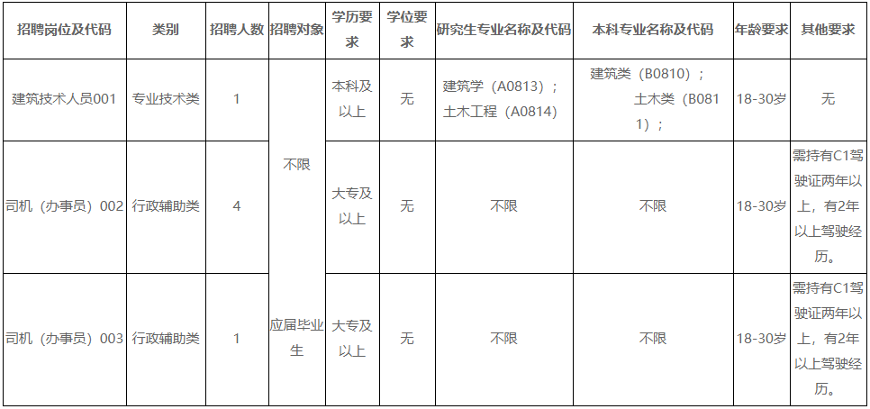 2.崗位為司機(辦事員),崗位代碼002,招聘對象為普通高等院校2022年應屆畢業(yè)生和社會上具有國家承認學歷的大學專科畢業(yè)以上人員。