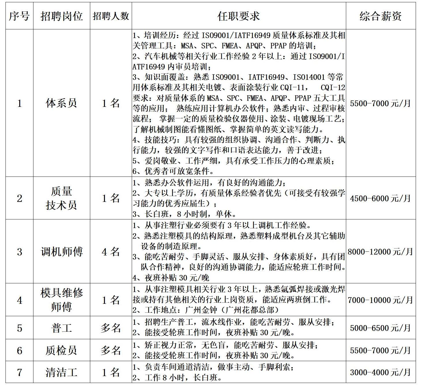 清遠(yuǎn)市金鐘汽車零部件有限公司為廣州市金鐘汽車零件制造股份有限公司(股票代碼:301133)旗下子公立于2019年,總投資約3億人民幣。公司主要從事汽車零部件研發(fā)制造,也是國內(nèi)外眾多汽車制造商一級或二級供應(yīng)商,目前一期工程建造完畢,包括注塑、涂裝、粉末噴涂、PVD鍍膜、絲印、電鍍、自動化裝配等工序。公司一直秉承“持續(xù)改進(jìn),永續(xù)經(jīng)營”方針,配套服務(wù)于各大主流汽車商,行業(yè)口口碑好;訂單飽滿。