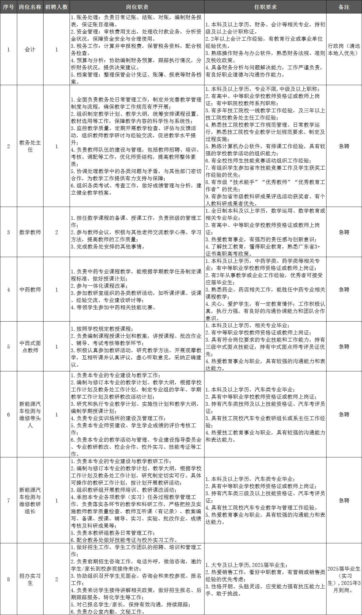 清遠(yuǎn)市南方技工學(xué)校2025年上半年教職工招聘公告