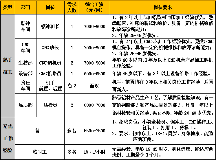 因生產(chǎn)發(fā)展需要,誠聘以下崗位: