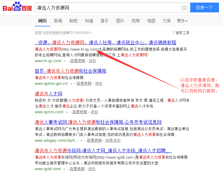 恭喜“清遠(yuǎn)人力資源網(wǎng)”www.jingzhiedu.com榮登百度搜索清遠(yuǎn)地 區(qū)首位。清遠(yuǎn)人力資源網(wǎng)是由清遠(yuǎn)市人力資源市場(chǎng)指導(dǎo)、清遠(yuǎn)市錦繡 前程人力資源有限公司運(yùn)營(yíng)的官方求職招聘平臺(tái)。從3月份正式推 廣到現(xiàn)在,本網(wǎng)站已經(jīng)吸引了眾多企業(yè)與求職者注冊(cè)。